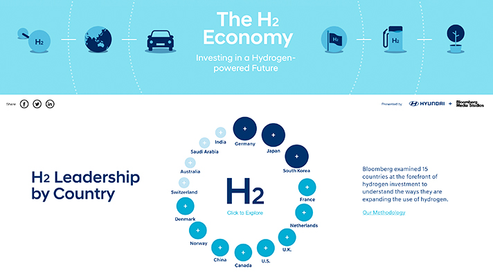 Hyundai Motor Company has recognized and invested in the value of hydrogen energy long ago, and it is striving to promote the importance of hydrogen society and accelerate its construction. As part of this effort, we are running the ‘H2 Economy Campaign’ with Bloomberg, a global media company ? to create synergy with each other. The campaign is primarily aimed at raising awareness of hydrogen energy. It is a work to communicate with opinion leaders around the world to create efforts for the hydrogen ecosystem and to make the hydrogen society come true. In addition, Hyundai Motor Company also advertises technological competitiveness related to the hydrogen economy, including its hydrogen fuel cell.
